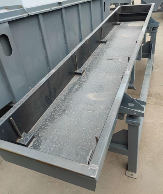 振動輸送機一般由振源—振動電機或激振器、承載體、減振支承、承載基礎及相關配套附件等組成。根據現場使用環境及輸送物料特性要求,輸送機承載體可采用不同材料分別加工成U形槽和管狀等結構形式,并可按有無密封要求制作成敞開型或封閉型,以滿足不同工藝流程;由于設備承載體是金屬制件及潤滑點遠離物料,因此,該機不僅可以輸送各種常溫、普通物料,而且可以輸送很多高溫、有毒等非常規物料;如對承載體施行特殊加工,則在輸送過程中可實現物料的篩選、干燥、加溫、冷卻等工藝要求。