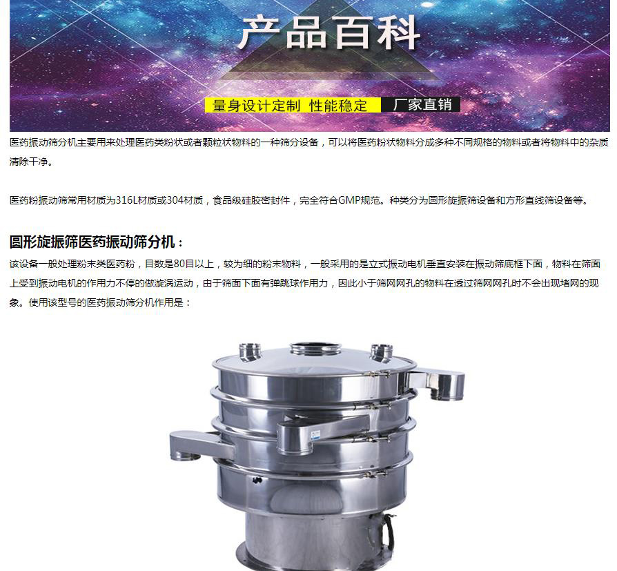 產(chǎn)品描述:河南康振機(jī)械有限公司主要生產(chǎn)經(jīng)營:超聲波振動篩,直線振動篩,振動設(shè)備,振動過篩,不銹鋼振動篩,振動平臺廠家,脫水篩,食品篩分機(jī),醫(yī)藥篩分機(jī),實力制造廠家,服務(wù)熱線:13903732065