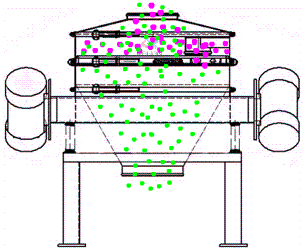 (2-1)三次元旋振篩工作原理:該系列篩機(jī)是利用立式振動(dòng)電機(jī)作為振動(dòng)源,上下端所安裝的重錘(不平衡重錘),將電機(jī)的運(yùn)動(dòng)轉(zhuǎn)變?yōu)樗?、垂直、傾斜的三維運(yùn)動(dòng),再把這個(gè)運(yùn)動(dòng)傳遞給網(wǎng)面.改變電機(jī)上下重錘的相位角可以改變原料的運(yùn)動(dòng)方向;