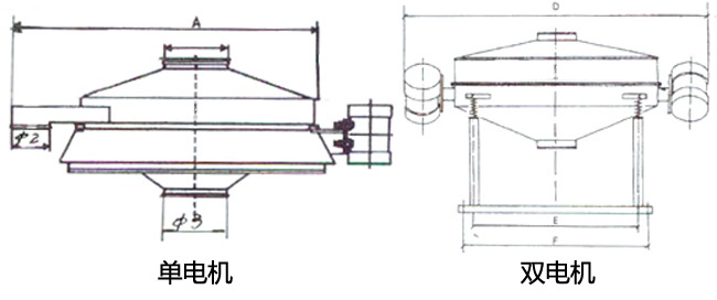 直排篩的作用原理是振動電機軸上下端的兩組偏心塊(不平衡偏心塊),將振動電機的旋轉運動變為水平、垂直、傾斜以及離心作用的多作用力重疊,再將這種作用力傳遞給篩面。改變上下偏心塊的相位角和可以改變激振力的大小和物料的運動軌跡。