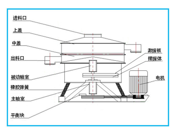 即可調節偏心距的激振器產生了非線性三維運動,物料也產生同樣的近似手動作業的運動,從而達到篩分之目的,